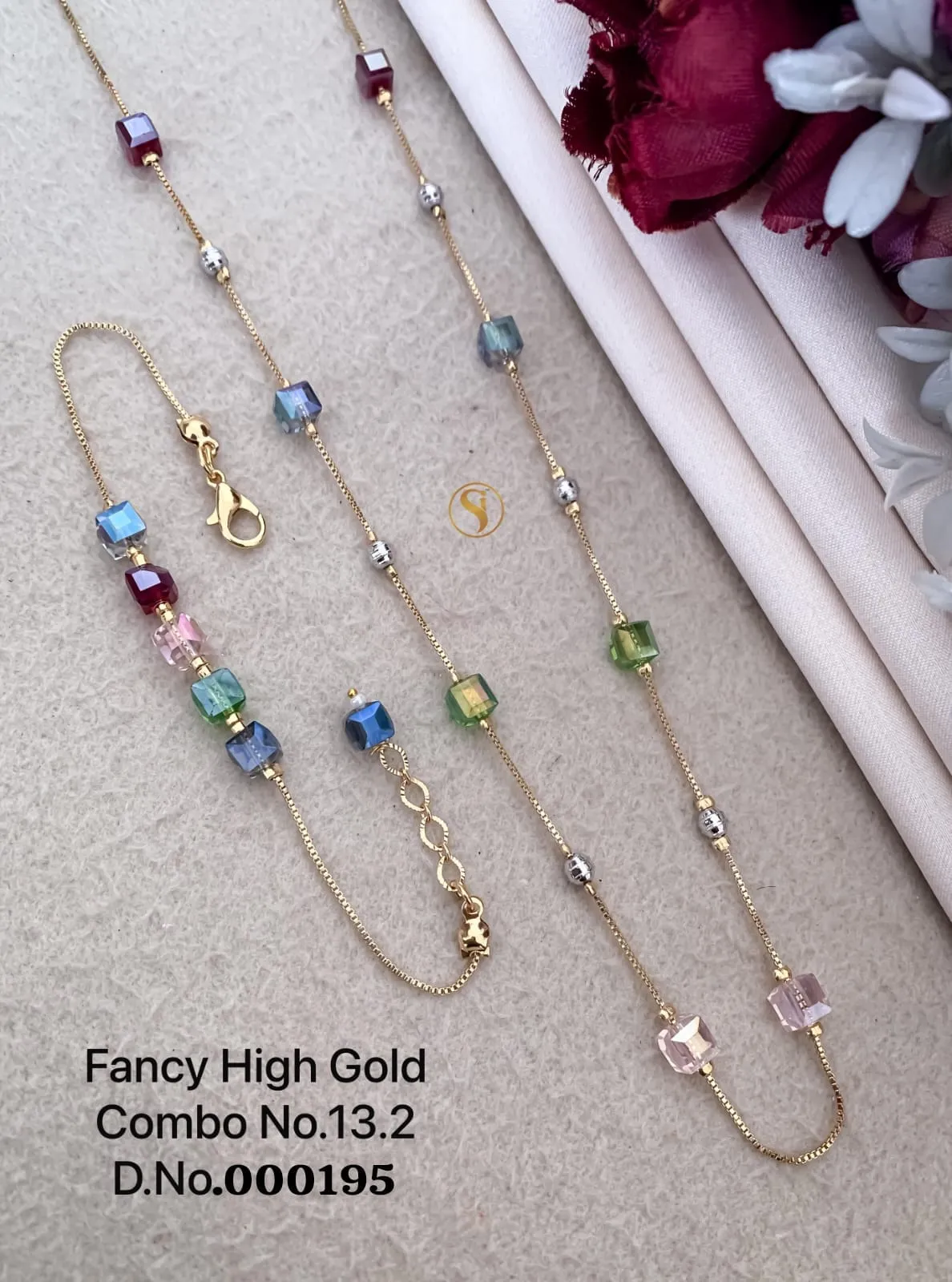 Fancy high gold ceramic pearl mala set with bracelet