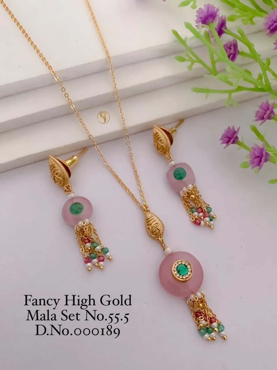 Fancy high gold pink pearl mala set crafted with pastel beads and graceful detailing to add soft elegance to your look. The soothing pink tones combined with gold elements make it suitable for both traditional and modern outfits. Its lightweight design ensures comfort while its fine craftsmanship offers a premium appearance for any occasion.