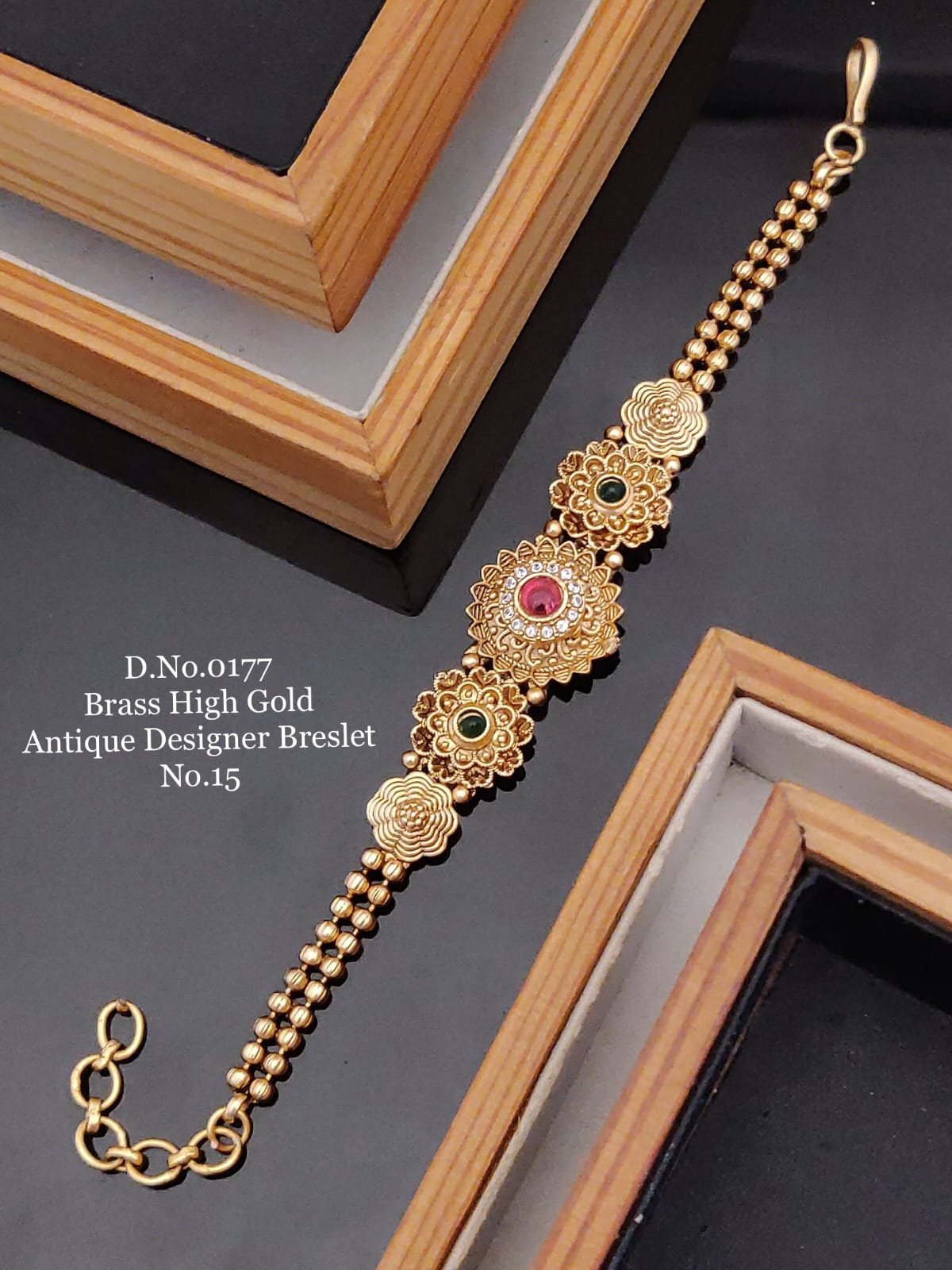 Brass high gold antique heritage lotus floral bracelet designed with beautifully sculpted lotus petals and traditional embellishments creating a heritage inspired accessory perfect for festive moments weddings and temple wear.