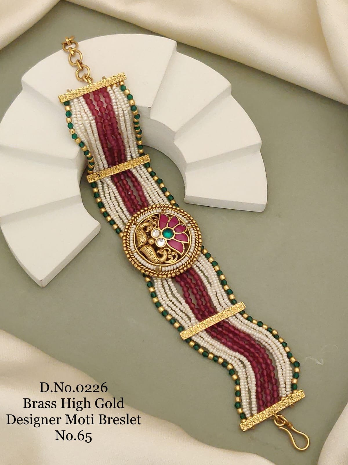 Brass high gold designer moti bracelet multi strand beaded - https://imitation.rashree.com/