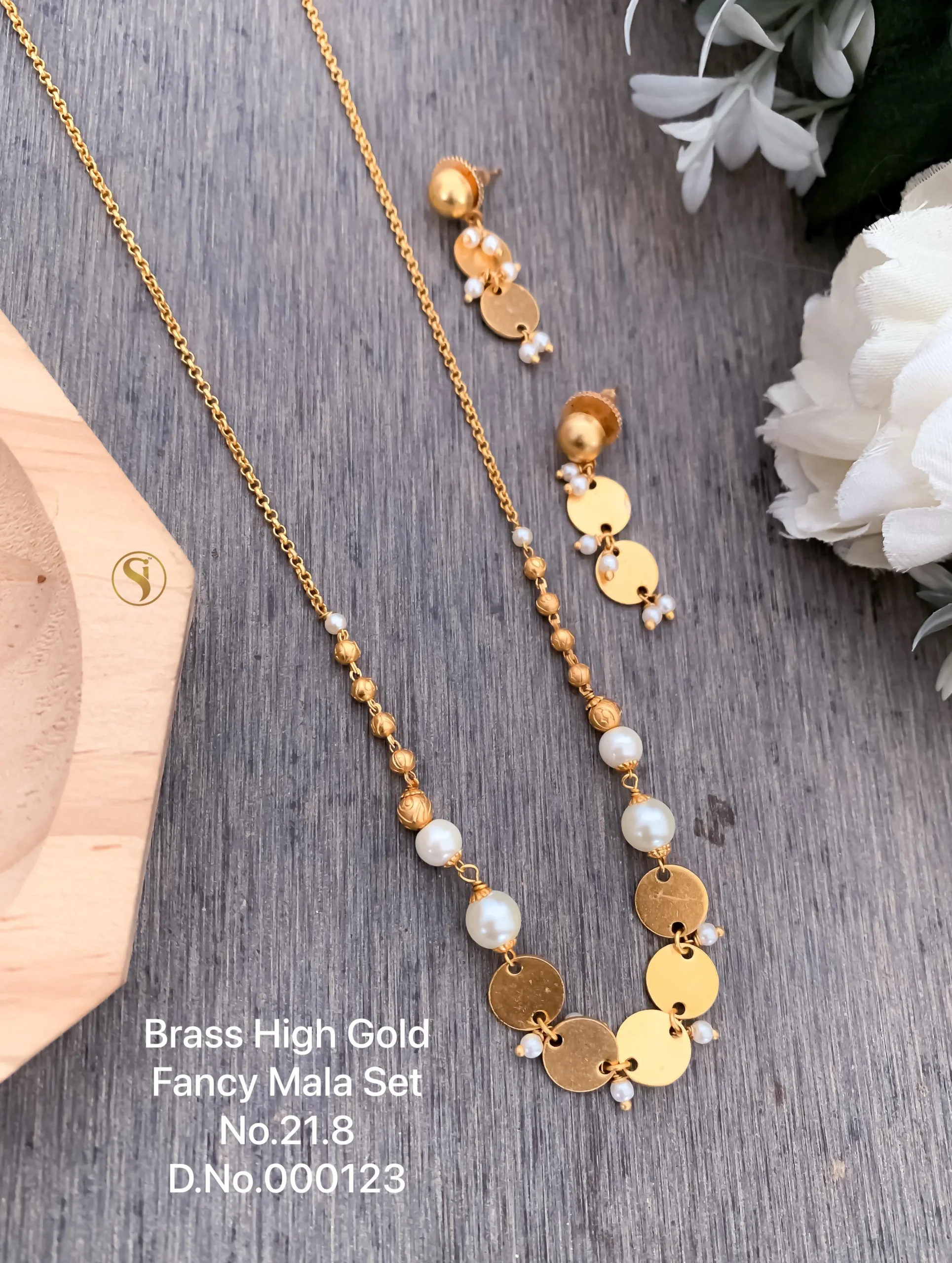 + Free ShippingContemporary disc and pearl mala set featuring stylish gold-tone discs combined with pearl elements perfect for festive daily and gifting purposes.|Details:|- Metal: brass+Silver +alloy with Premium Polish|- Closure: hook|- SKU Code: JG_PRLMALA_0 (10)