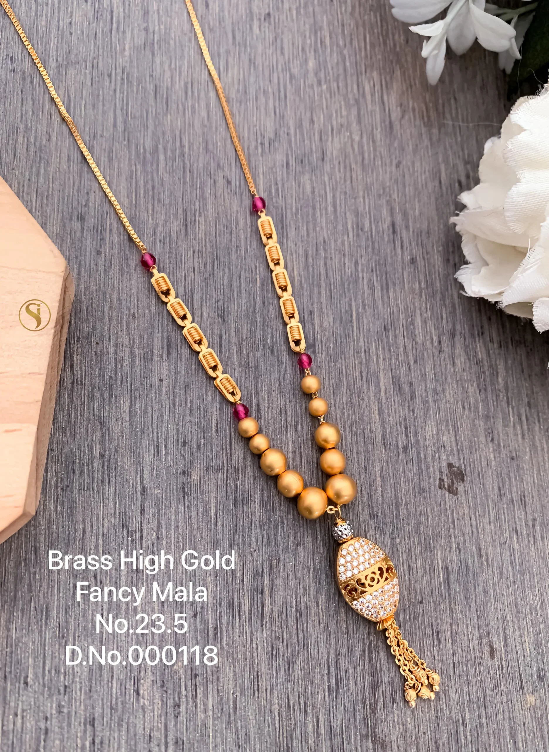 Brass high gold matte finish bead pendant fancy mala for women