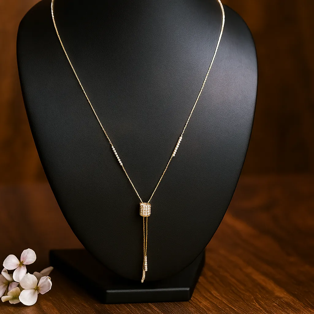 A clover mother-of-pearl pendant necklace in gold polish, designed with sparkling stones and elegant motifs. Each clover charm represents luck and positivity, making it not just jewelry but also a symbolic piece. Its refined craftsmanship makes it an eye-catching accessory suitable for weddings, parties, and everyday wear.