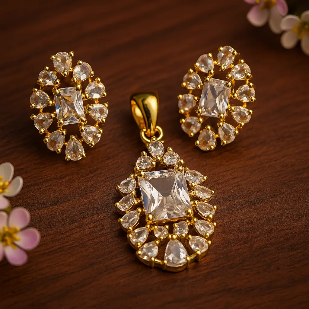 geometry. The square centerpiece surrounded by teardrop and round stones